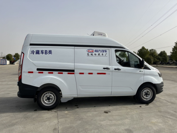 福特全顺V362面包冷藏车;湖北程力冷藏车是引进整板切割专利技术与真空吸附设备制造出来的最新冷藏车。生产的冷藏车厢体采用整体骨架焊接技术,内外厢壁板选用优质玻璃钢或彩钢板;中间使用8mm厚进口聚氨酯保温;厢体四周使用铝合金包边;底板使用进口铝板,保温效果好,整体结构坚固;停机后保温效果在12小时以上。