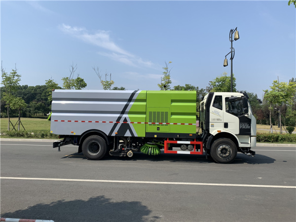 解放洗扫车(16方);解放洗扫车主要应用于承担城区主干路的冲洗、清扫作业的车辆,车辆中置两刷盘,中置宽吸盘,具防撞避障功能的V型高压冲水架。该车既可单独作为扫路车进行路面清扫抽吸作业;又可作为高压冲洗车进行路面冲洗抽吸作业;还可将路面清扫抽吸与高压冲水组合作为洗扫车使用,实现清扫、冲洗、抽洗的多种组合选择使用,以满足不同用户的多种需求,该车可广泛适用于城区主干路及高架桥的冲洗、清扫作业。